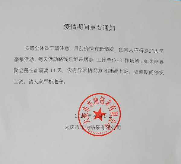東油鉆采有限公司:疫情期間重要通知
