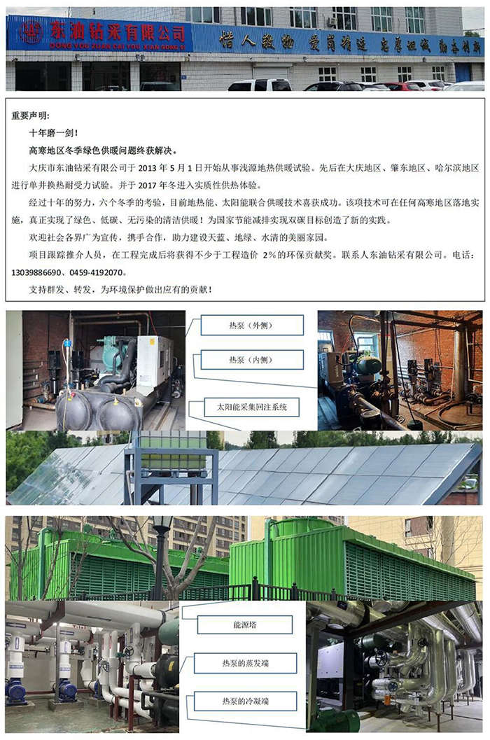 大慶市東油鉆采有限公司的地熱和太陽能取暖解決方案(2023年6月15日發(fā)布)