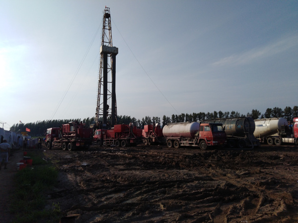 伊22-15-17井,油層套管的固井施工,于2018年7月19日開始,17點30分擺好灰罐和泵車等固井車輛,老天眷顧,天氣不錯,一切準備就緒。 于7月20日早晨7:30施工圓滿完成。本井油層套管完鉆井深2817米,注灰82方(60方低密度+22方原漿),頂替33.8方,水泥漿返出,施工正常。