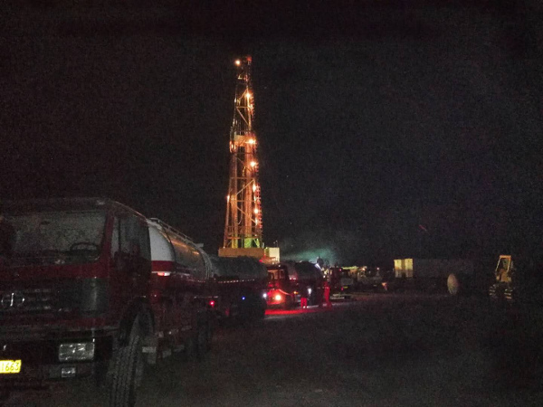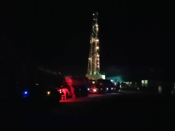 趙清軍從讓58-11-12井現(xiàn)場傳回來的信息,大慶市東油鉆采有限公司承擔的完井固井施工于2018年12月16日夜正在緊張的進行。